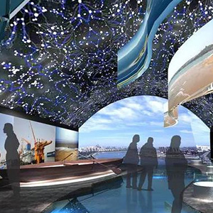 由多塊銀幕組成,通過多臺投影機,采用投影融合技術(shù),創(chuàng)造出超大無縫的逼真畫面。利用電影自身特有的技術(shù)優(yōu)勢,使觀眾在高質(zhì)量的聲畫環(huán)境包圍之中,產(chǎn)生身臨其境的強烈的現(xiàn)場 ……
